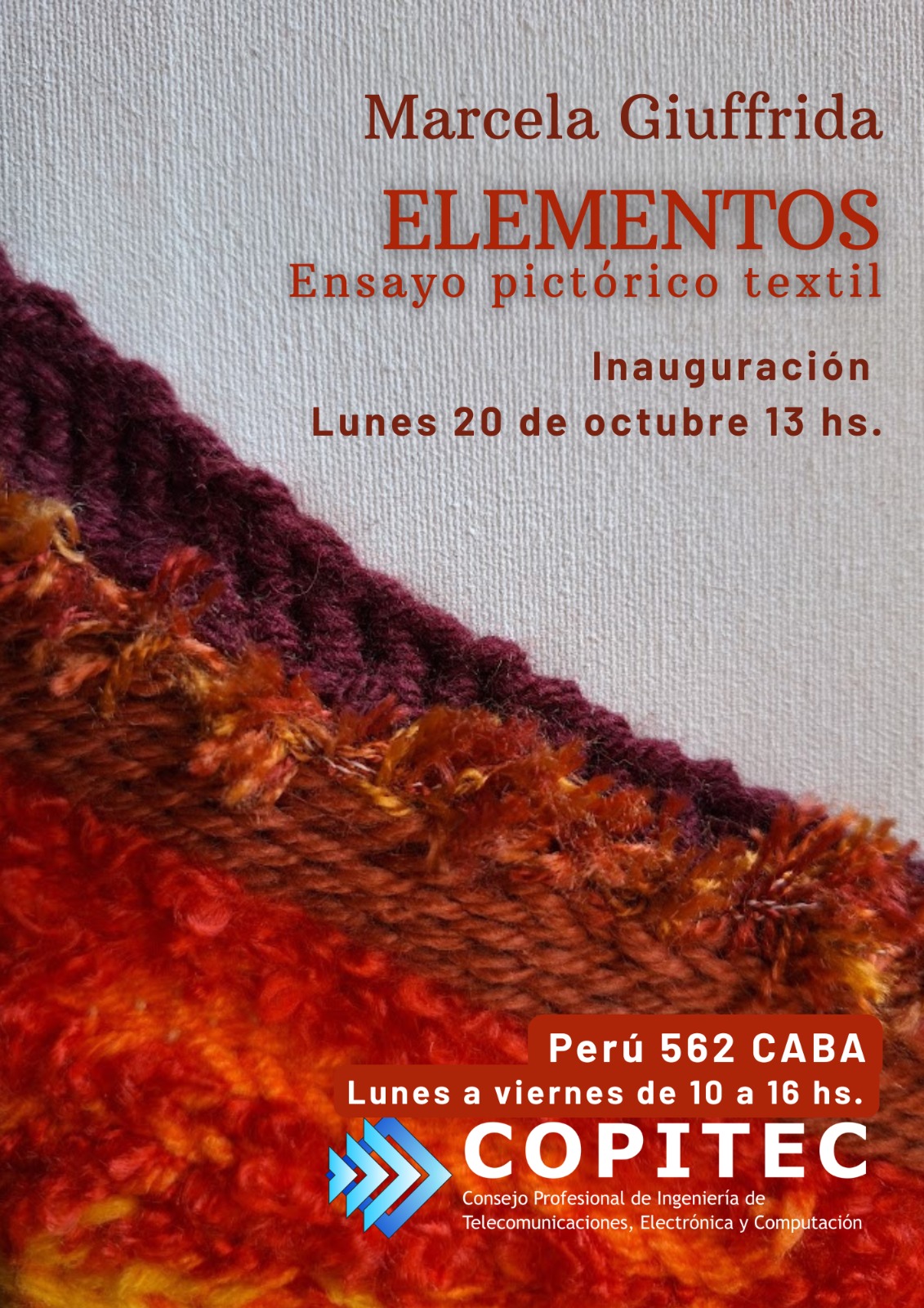 🎨 𝗜𝗡𝗔𝗨𝗚𝗨𝗥𝗔𝗖𝗜𝗢́𝗡 | 𝗘𝗟𝗘𝗠𝗘𝗡𝗧𝗢𝗦 | 𝗘𝗻𝘀𝗮𝘆𝗼 𝗣𝗶𝗰𝘁𝗼𝗿𝗶𝗰𝗼 𝗧𝗲𝘅𝘁𝗶𝗹 📅 Lunes 20 de octubre de 2025 📍 COPITEC – Perú 562 PB, CABA 🕙 De lunes a viernes, 10 a 16 hs