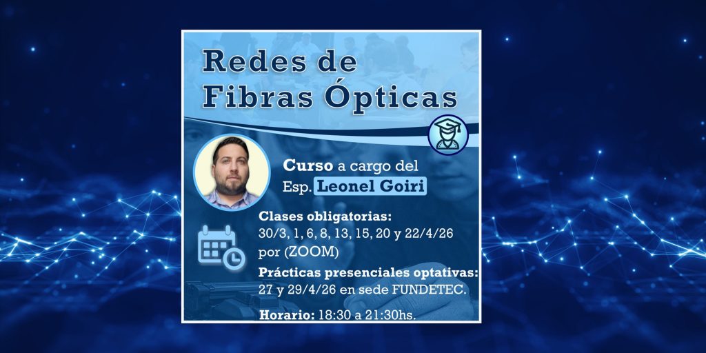 Nos complace informarles sobre el curso “Redes de Fibras Ópticas”, que se dictará en modalidad virtual a través de Zoom, con prácticas presenciales optativas.